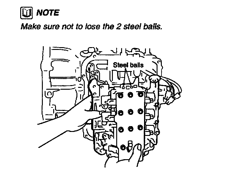 16. Remove the valve body, gasket, and the 2 steel balls.