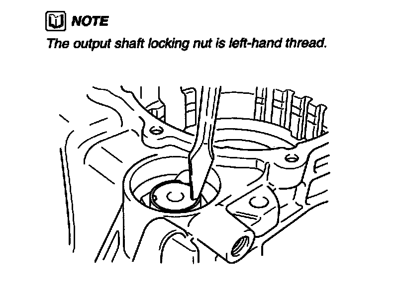 73. Straighten the locking tab of the output shaft locking nut, if bent.