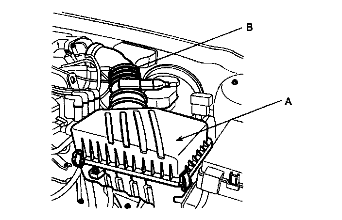 2) Air cleaner upper cover(A) and air intake hose(B).