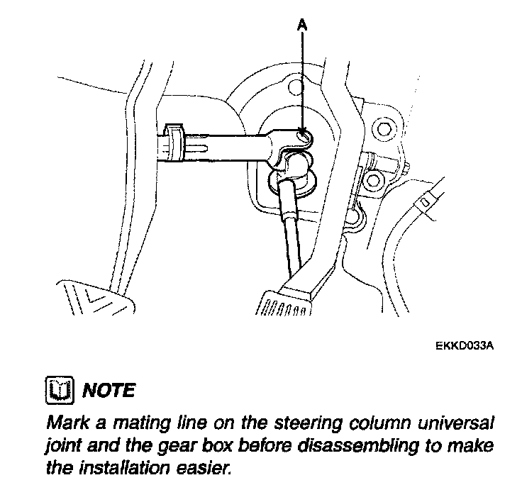 NOTE: Mark a mating line on the steering column universal joint and the gear box before disassembling to make the installation easier.