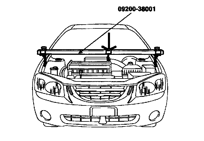 17. Install the special tools (09200 - 38001), the engine support fixture and the adapter, on the engine assembly.