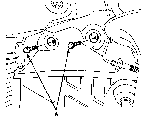 44. Remove the engine to the torque converter mounting bolts(A). (4EA)