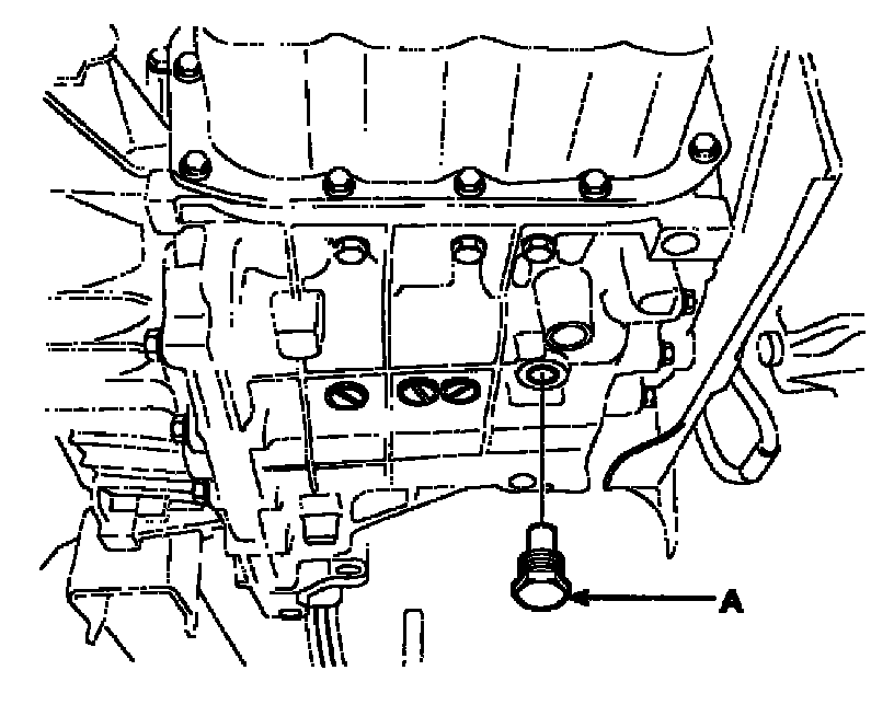 23. Remove the drain plug(A) and drain the automatic transaxle fluid.