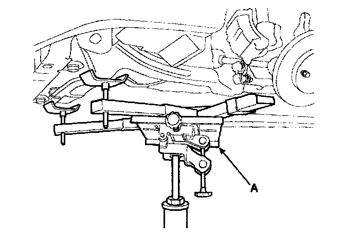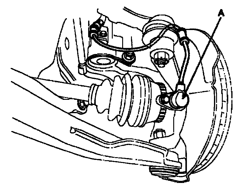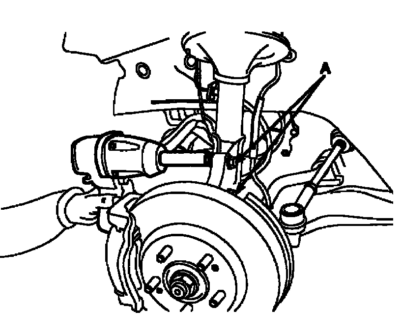 30. Remove the front caliper(s)(A) and use a wire to secure the caliper(s)(A) to the vehicle so that it is out of the way.