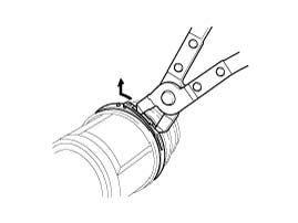5. Using a plier or flat-tipped (-) screwdriver, remove the snap ring (A).