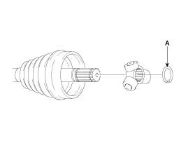 8. Remove the boot (A), of the transaxle side joint (TJ).