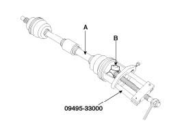 6. Remove the spider assembly (B) from drive shaft (A) by using the Special Tool (09495-33000).