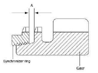 3. Push the synchronizer ring toward the clutch gear and check clearance "A". Replace if it is not within specifications.