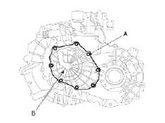 3. Remove the rear cover bolts(A) and the rear cover(B).
