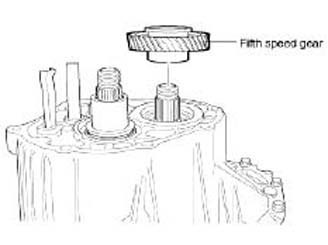 11. Remove the fifth speed gear after removing the locking nut on the output shaft using the special tool(09495-33000).