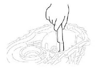 27. Remove the output shaft bearing outer race.