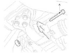 11. Remove the start motor mounting bolts and the transaxle mounting to the engine bolts(A).
