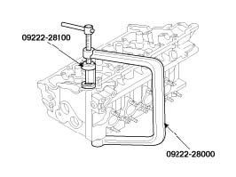 4) Using the SST (09222-28000, 09222-28100), compress the spring and install the retainer locks. After installing the valves, ensure that the retainer locks are correctly in place before releasing the valve spring compressor.