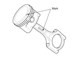 2) The piston front mark and the connecting rod front mark must face the timing belt side of the engine.