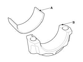 2) Install the bearings (A) in the connecting rod and connecting rod cap (B).