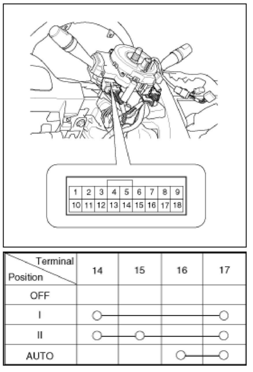 Operate the auto light switch, then check for continuity between terminals of 18P multi-function switch connector.