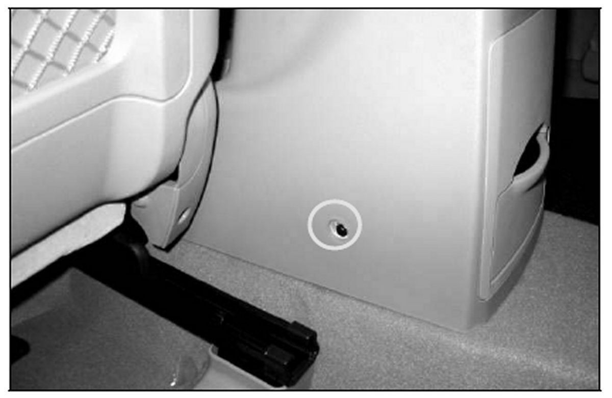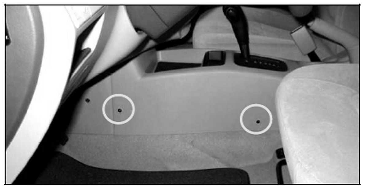 1. Remove the screws that hold the center console in position, starting with the screws in the front and moving to the back of the console. There are 3 screws on each side. The front two can be removed by sliding the front seats fully rearward. The rear pair can be removed most easily by sliding the front seats completely forward to get access to those screws.