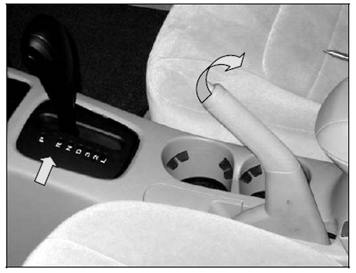 2. Move the shift lever to the 'R' position and lift the parking brake handle as high as possible to ease removal of the center console. When lifting out the center console, be careful to avoid scratching the console.