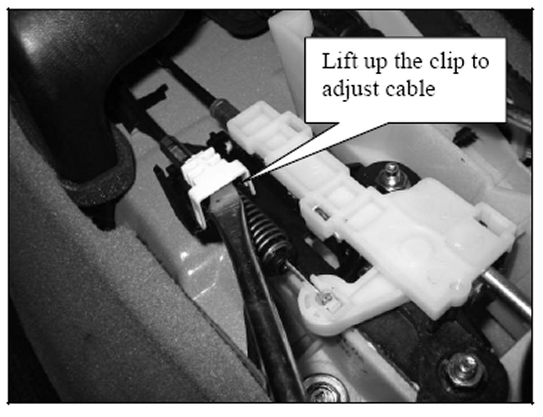 2. Re-check that the shift lever does not move from the 'P' position (with the lock release button depressed) when the ignition switch is in the 'LOCK' position. If the lever moves then try to increase the gap slightly.