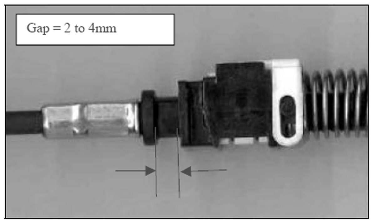Caution: If the gap is more than the 2 to 4mm, the ignition key may not be able to turn to unlock the shifter.