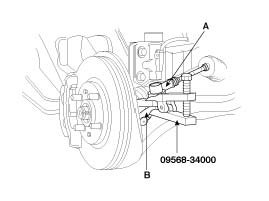 CHECKING THE TIE ROD END BALL JOINT STARTING TORQUE1. Disconnect the tie rod (A) and knuckle (B) by using the special tool (09568-34000).