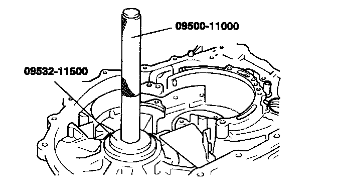 73. Use special tools 09532-11500 and 09500-11000 to press in the differential bearing outer race.