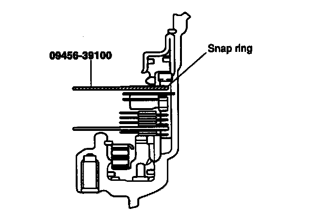 5. Install the snap ring using special tools (0945321000). To be sure that you have the correct snap ring, measure the thickness and compare it to the chart in the general parts.