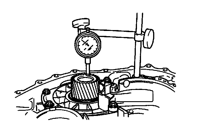 54. Using a dial indicator, measure the end play of the underdrive sun gear.