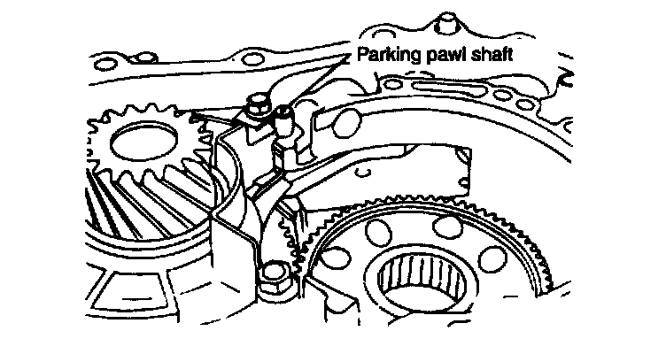 34. Install the parking pawl, spacer and spring, then install the parking pawl shaft.