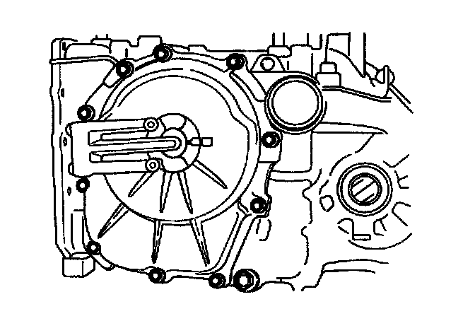 33. Install the 7 transfer gear mounting bolts. Tighten the bolts to 19 Nm (190 kg cm, 14 ft. lbs.).