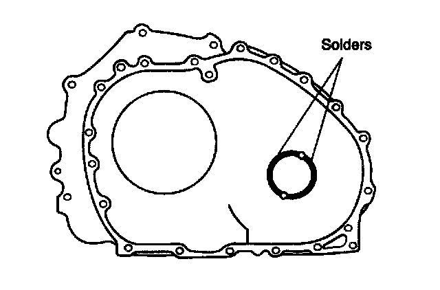67. Place two strips of solder, approximately 10 mm (0.39 inch) long and 3 mm (0.12 inch) thick, on the torque converter housing.