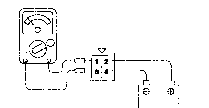3. Check the continuity between terminal (1) and terminal (3) of the A/T control relay when the jumper wires are connected to and disconnected from the battery.
