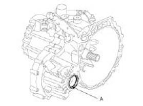 2. Using a flat-tip screwdriver, remove the oil seal(A).
