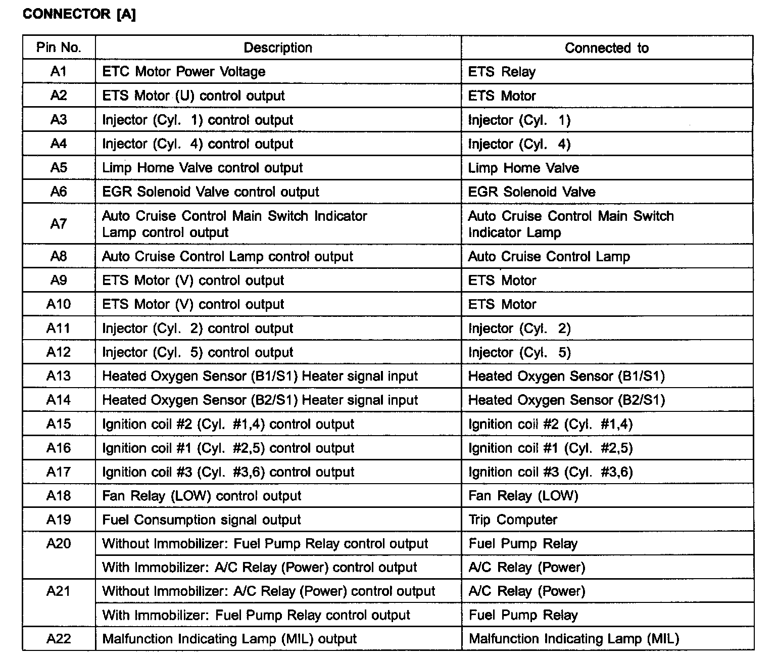 ECM Terminal Function - Connector[A] - Part 1:
