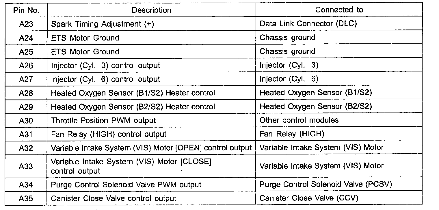 ECM Terminal Function - Connector[A] - Part 2: