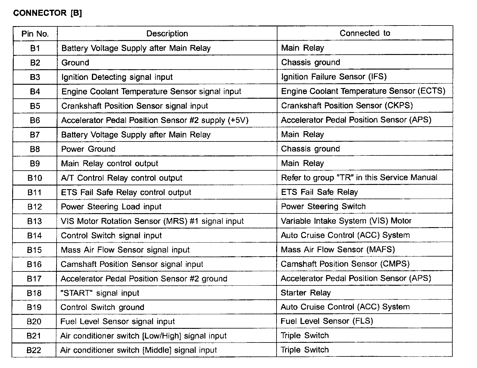 ECM Terminal Function - Connector[B] - Part 1:
