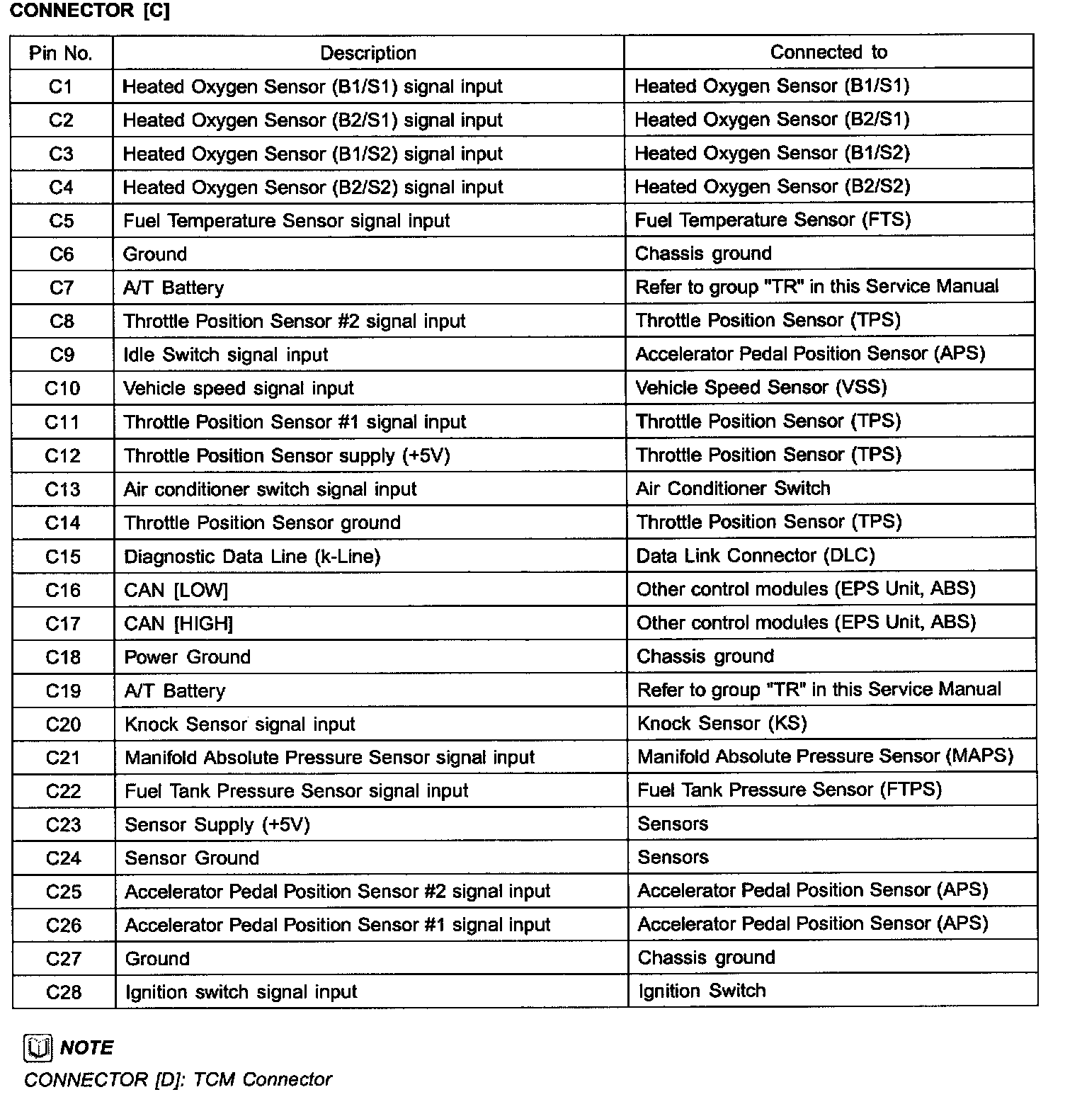 ECM Terminal Function - Connector[C]: