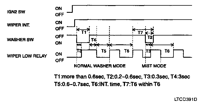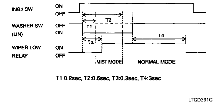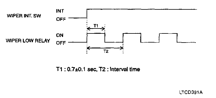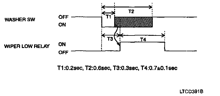 c. After T3, the wiper low relay output is ON for 0.7 sec. (For 1 Time wiping)