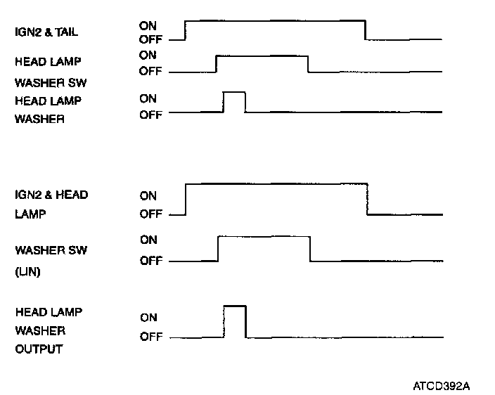 1. In case of IGN2 = ON & TAIL LAMP = ON status, if head lamp washer switch input is detected, head lamp washer output is turned ON.