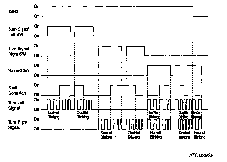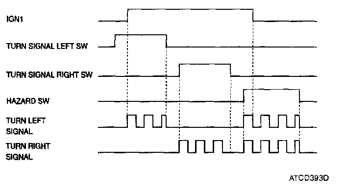 While IGN2 is on, if turn signal left SW or turn signal right SW or hazard SW input is detected, then turn signal outputs are turned ON following the switch input (left, right or hazard)