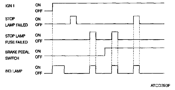 The purpose of this function is to indicate stop lamp(s) failure and brake fuse failure Depending on foot brake pedal switch input, brake fuse and lamp failure is detected In IGN1 ON State, when stop lamp fuse is failed (stop lamp failed = ON) or when a stop lamp failure is detected (stop lamp fuse failed = ON), then indicator lamp output is turned ON.