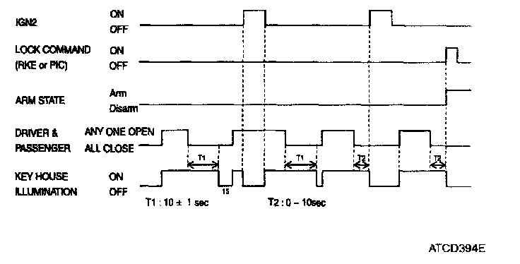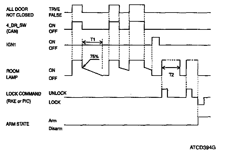 NOTE: While room lamp is turned ON by UNLOCK by RKE signal (for 30 sec), if UNLOCK by RKE input is acquired again. Room lamp timer should be initialized to 30sec
