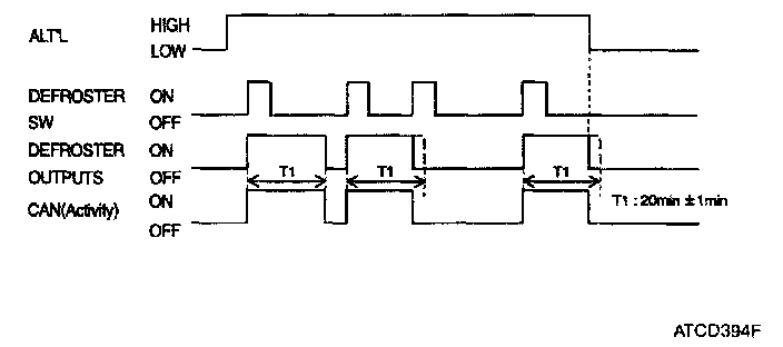 If alternator input is changed to low, defroster outputs should be turned OFF immediately.