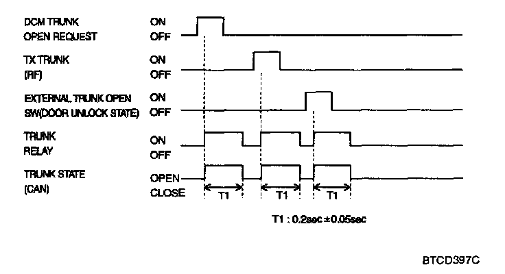 If the trunk open data frame has been received by BCM, the trunk open relay is driven for 0.2sec (Trunk release on time)