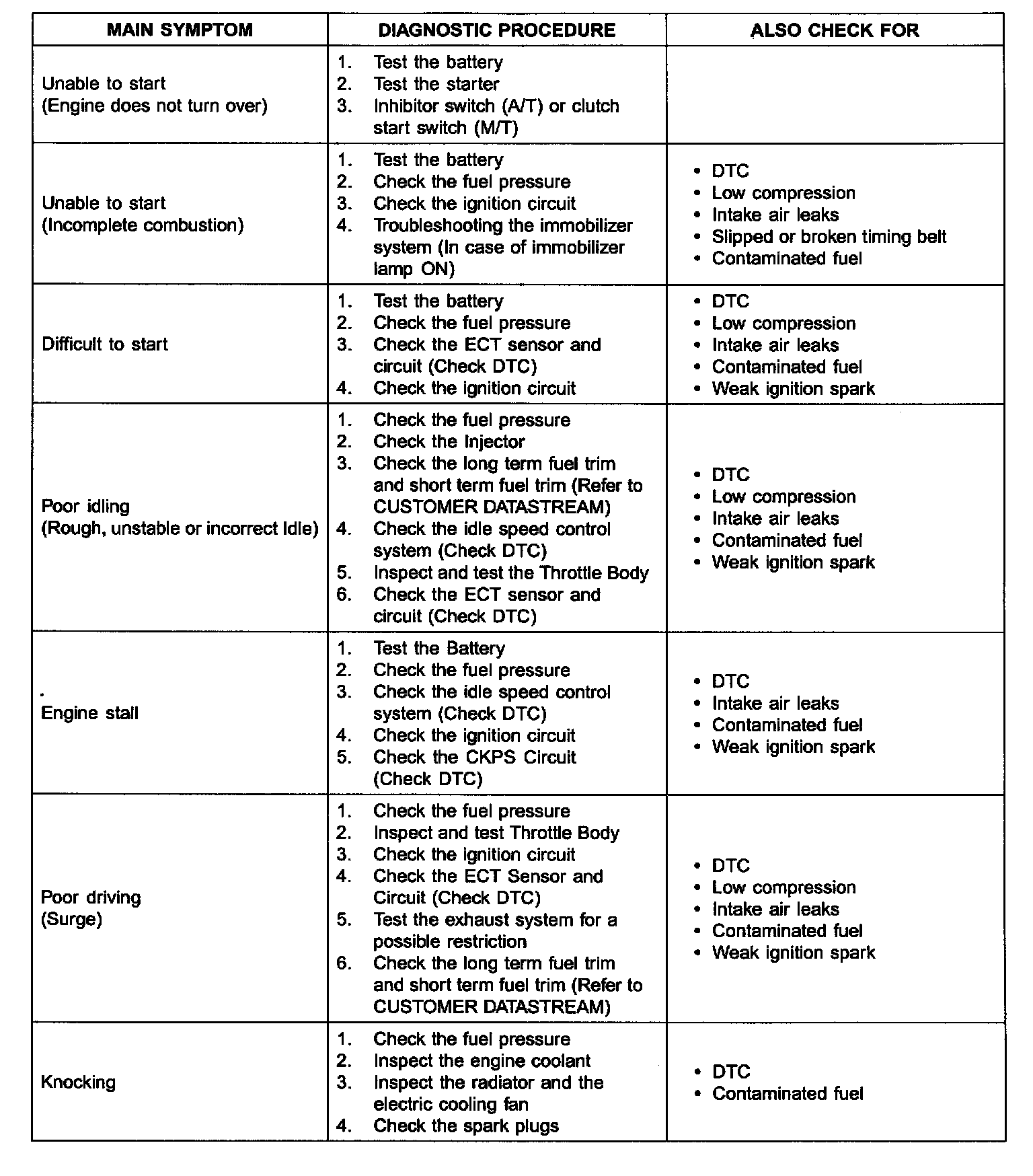 Symptom Troubleshooting Guide Chart - Part 1: