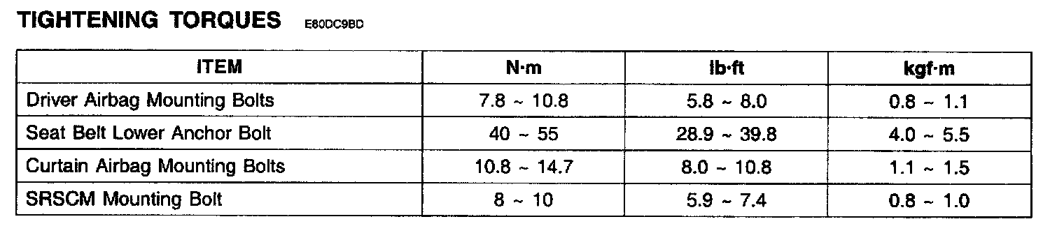 Tightening Torques: