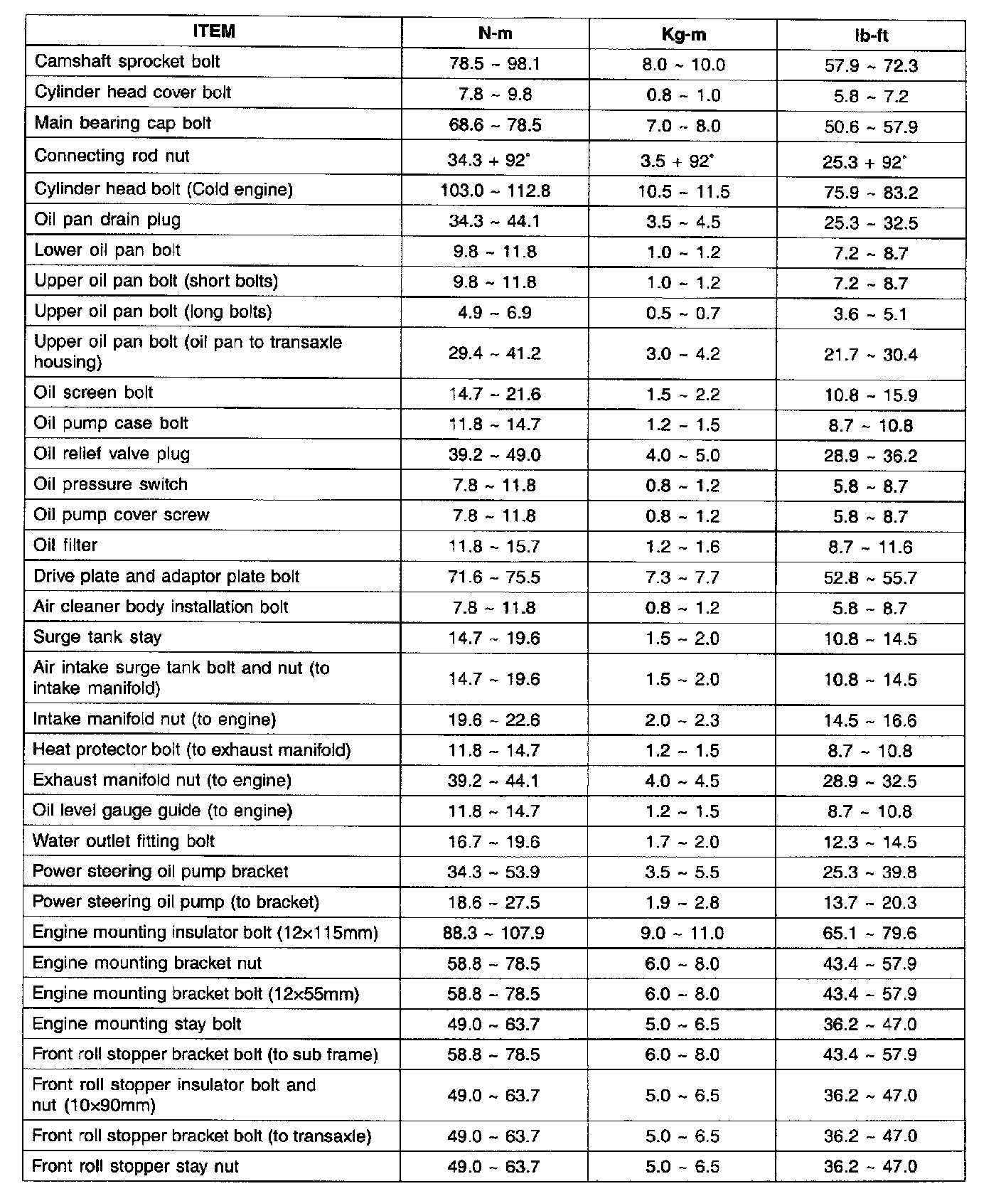 TIGHTENING TORQUE