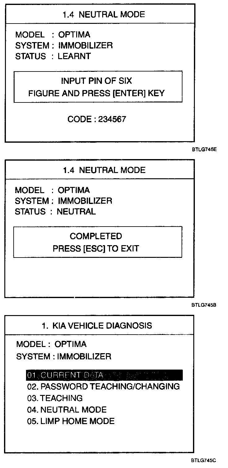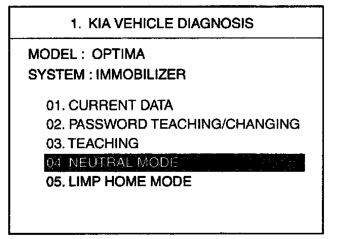 A valid ignition key is inserted and after ignition on is recorded, the ECM requests the vehicle specific data from the tester. The communication messages are described at "Neutral Mode" After successfully receiving the data, the ECM is neutralized.
