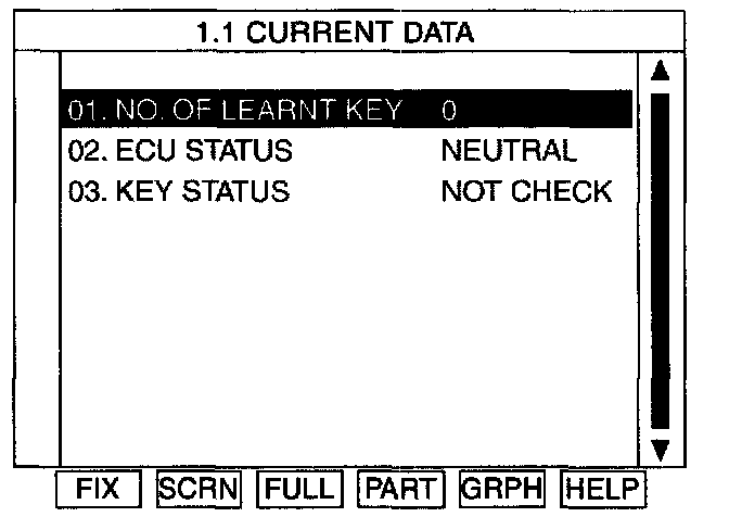 The teaching of keys follows the procedure described for the virgin ECM. The vehicle specific data have to be unchanged due to the unique programming of the transponder. If data should be changed, new keys with a virgin transponder are requested.