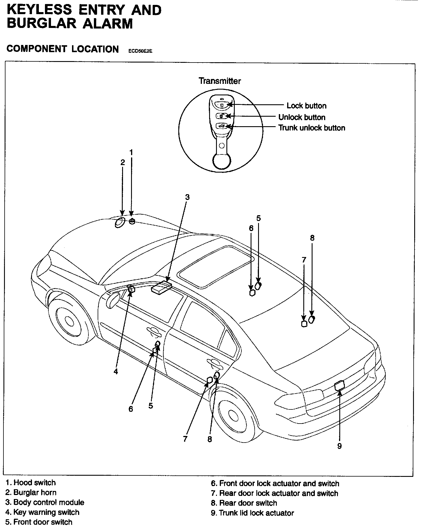 Keyless Entry And Burglar Alarm - Component Location: